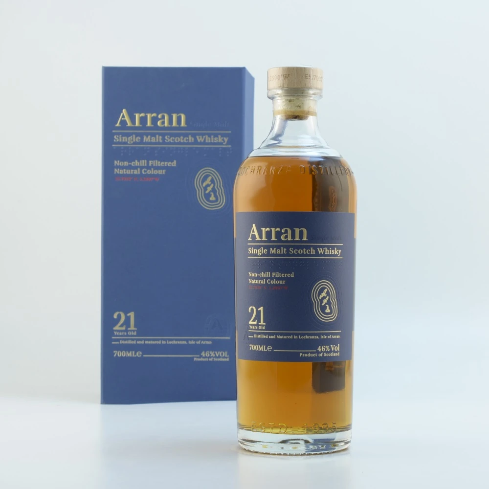 Manchmal löst eine Sonderedition oder ein Experiment bei der Kundschaft so viel Begeisterung aus, dass sie später in das reguläre Sortiment aufgenommen wird. So geschehen mit dem feinen Arran Malt 21 Jahre Island Whisky aus Schottland. 2017 erblickte er als Limited Edition zum Jubiläum das Licht der Welt. Ab 2018 ist er ein fester Bestandteil des regulären Angebots der Brennerei auf der Hebrideninsel Arran. Der weder zu junge noch zu alte Scotch präsentiert sich von der schicken Seite und richtet sich nicht nur an Kenner. Auch wer niveauvoll beginnen will, kommt hier auf seine Kosten.