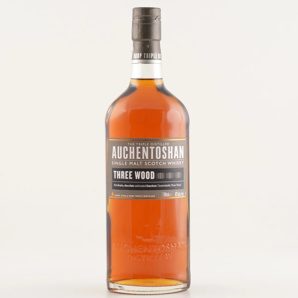 Mit einer zusätzlichen, leicht zimtigen Note versprüht er im Geschmack das, was in der Optik schon zu erahnen war: leicht ölig und Sirup artig. Im Abgang ist der Auchentoshan Three Wood besonders intensiv, ohne dabei gleichzeitig beschwerend zu sein. Eine lang anhaltende und angenehme Süße vermischt sich mit den Eigenschaften verschiedenster Früchte und sorgt für einen frischen und leicht belebenden Abgang. Fruchtigkeit dominiert in den ersten Sekunden und wird danach von der Mischung aus Frucht und Süße abgelöst, bis sich schließlich nur noch ein angenehm süßlicher Geschmack abzeichnet. Mit den besonderen Aromen wird dieser Whisky ganz besonders den Kenner überzeugen können.