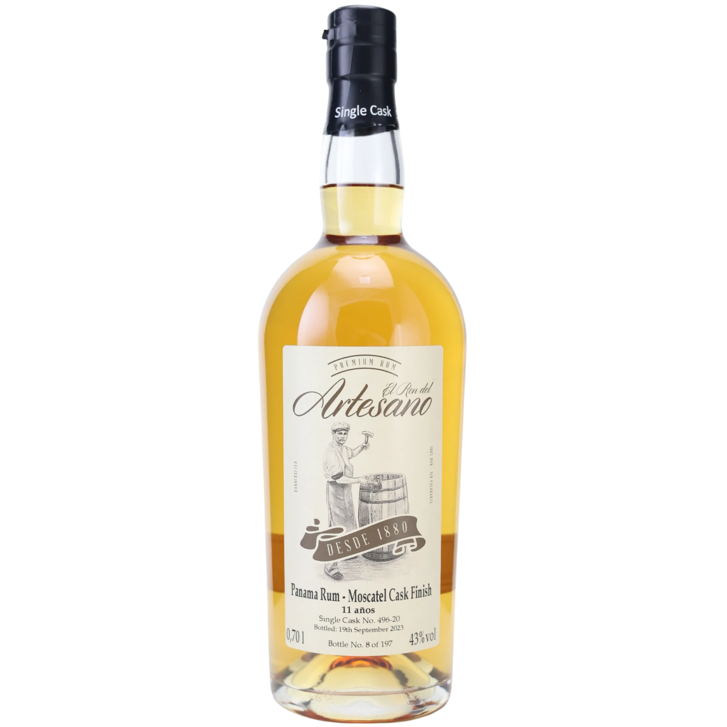 Der zeitgenössische El Ron del Artesano 11 Jahre Moscatel Cask Finish verdient volle Aufmerksamkeit. Immerhin ist er als mittelamerikanischer Rum aus Panama eine relative Seltenheit. Nach seiner Destillation aus Melasse wurde er von der Brennerei jahrelang in seiner Heimat bei tropischem Klima in Eichenfässern gereift. Nach elf Jahren wanderte der El Ron del Artesano 11 Jahre Moscatel Cask Finish nach Europa, wo man ihn seiner Nachlagerung in einem ehemaligen Moscatel-Süßweinfass (in dem zuvor Dessertwein aus der Rebsorte Muskateller abgefüllt war) unterzogen. Es ist dieses Finishing, dass den Panama Rum von der Masse abhebt. Der Single Cask Rum ist auf insgesamt nur knapp 200 Flaschen limitiert. Wie seine Mitstreiter derselben Marke verzichtet er auf Farbstoffe und auf Zuckerzusatz. Die Einzelfassabfüllung mit regulärem Alkoholgehalt verdient den puren Genuss.