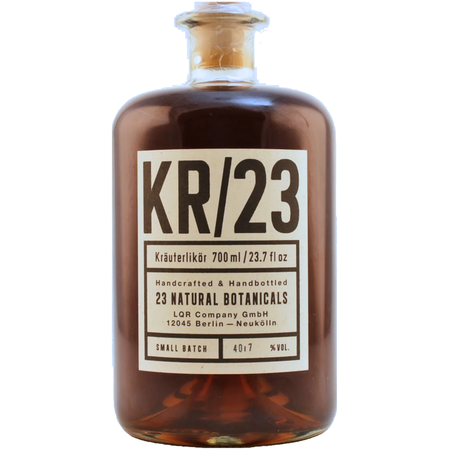 Wie die meisten Kräuterliköre und Magenbitter basiert der Kräuterlikör KR/23 nicht einfach nur auf Kräutern, sondern auch auf anderen pflanzlichen Komponenten wie Gewürzen, Wurzeln und Blumen. Die naturbelassenen, echten Zutaten werden im getrockneten Zustand oder sogar frisch verarbeitet, wobei die Brennerei im Berliner Stadtteil Neukölln ihren Sitz hat. Die alkoholische Basis für die Aromatisierung stellt ein aus Weizen gewonnener Vodka dar. Der Kräuterlikör KR/23 kommt nicht ohne einen süßenden Beistoff aus. Hierfür verlässt sich die noch junge Destillerie auf Kandiszucker mit Krustenkaramell. Ein Glasballon mit einem Fassungsvermögen von 25 Litern dient der Ruhephase des angesetzten Destillats. Nach einem Zeitraum von einigen Wochen ist die Mazeration im Alkohol beendet und der Kräuterlikör wird nach einem zweifachen Filtervorgang abgefüllt.