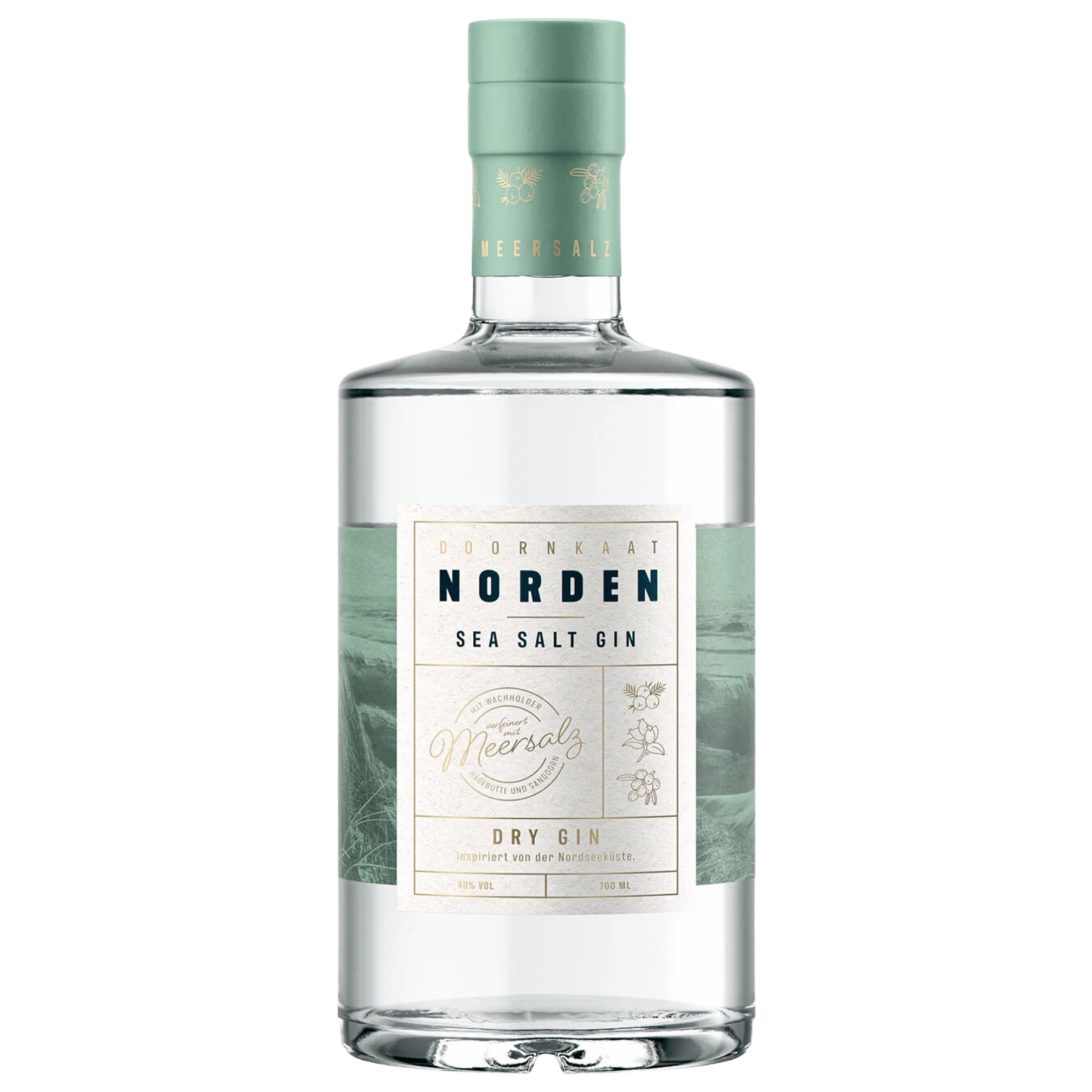 Lässt man sich vom klaren Doornkaat Norden Sea Salt Gin verführen, wird man ihn lang im Gedächtnis behalten. Seine feine Würze und seine klassischen Wacholdernoten von Pinie werden durch florale, herbale und würzige Untertöne ergänzt. Hagebutten und Sanddorn kommen ebenso zum Ausdruck wie ein salziger Unterton. Der angenehm trockene und langanhaltende Norden Sea Salt Gin von Doornkaat lässt sich prima pur trinken. Alternativ kann man hiermit Cocktails und Longdrinks mixen, bei denen der Hauch von Meersalz für das gewisse Etwas sorgt. Das Produktdesign ist schlicht gehalten, greift jedoch die Heimat in Ostfriesland auf.