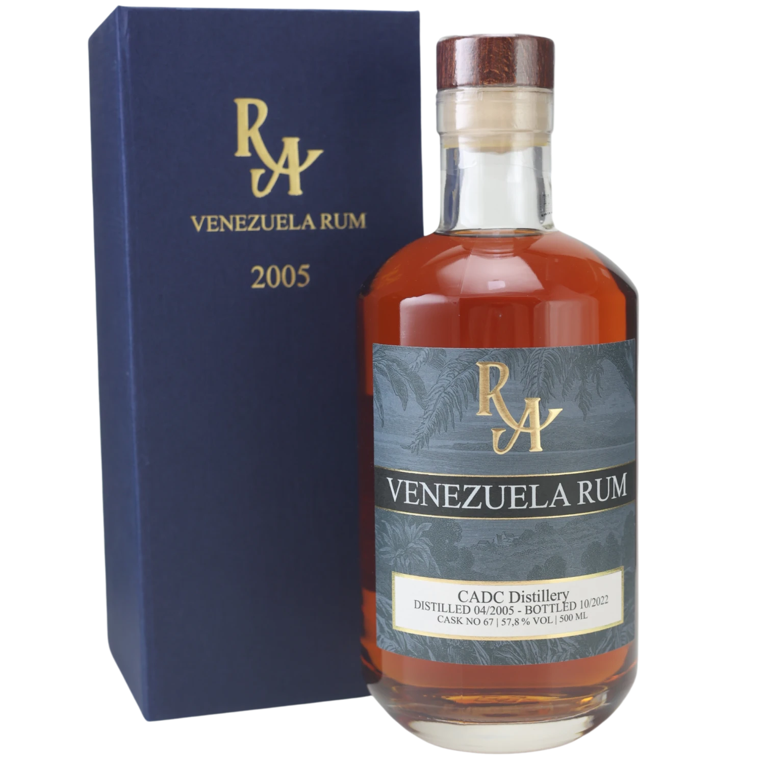 Der anspruchsvolle Rum Artesanal Venezuela CACD Distillery 2005 Rum wurde mit viel Liebe zum Detail hergestellt. Er spielt mit dem Buchstabenkürzel C.A.C.D. darauf an, dass die Produktion durch die Corporación Alcoholes del Caribe stattfand. Diese Destillerie hat in San Felipe im Staat Yaracuy ihren Sitz und übernimmt unter anderem die Verantwortung für Marken wie Cacique. Es handelt sich beim Rum Artesanal Venezuela CACD Distillery 2005 Rum um ein aus Melasse im column still gebranntes Qualitätsprodukt, das nach der Destillation 2005 in einem amerikanischen Weißeichefass reifen durfte. 17 Jahre lang lagerte der venezolanische Rum, bevor er 2022 als Single Cask Rum in einer limitierte Auflage an rund 350 Flaschen gefüllt wurde.