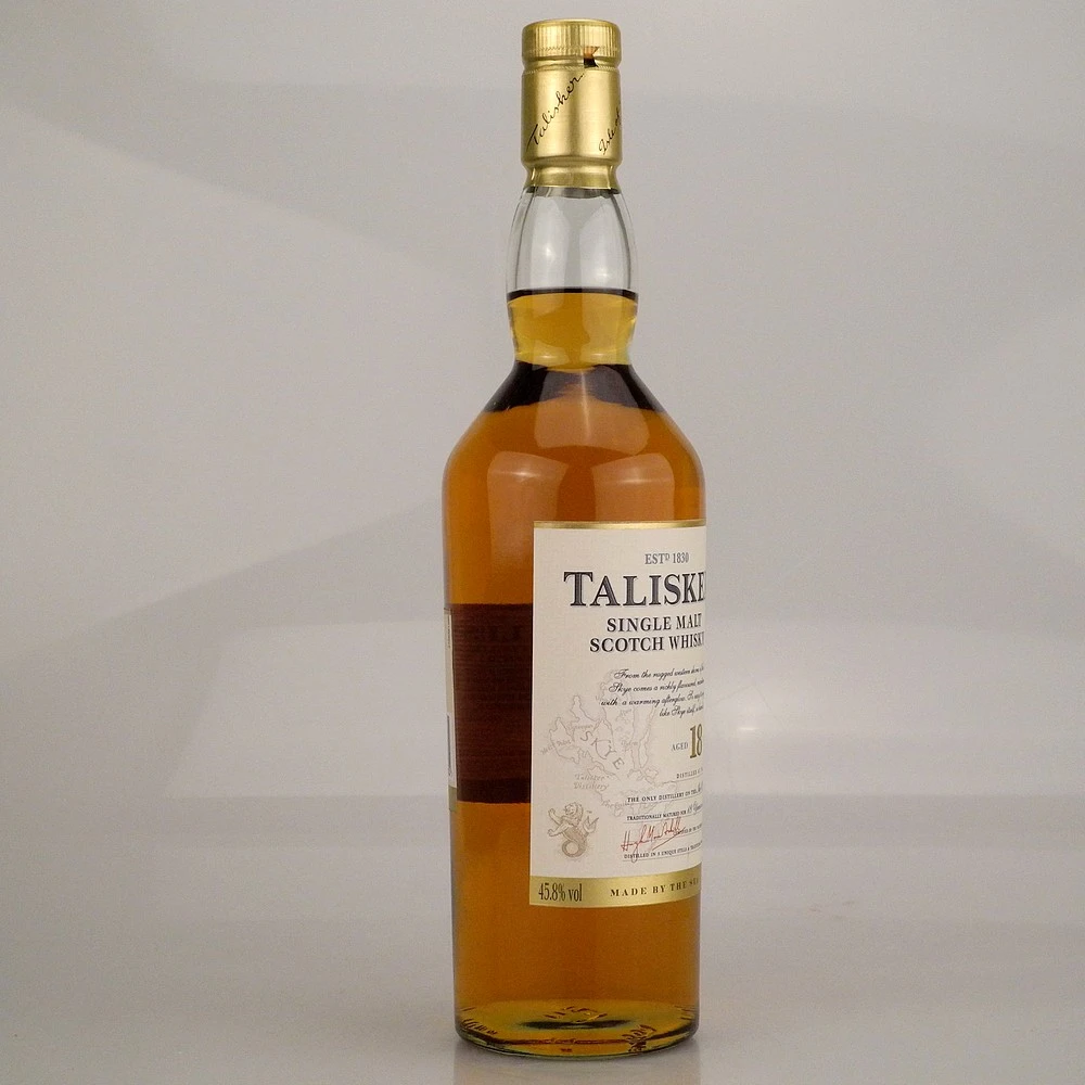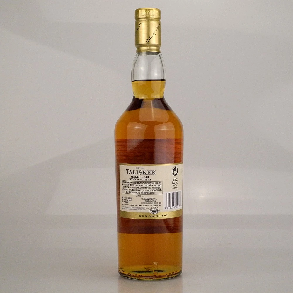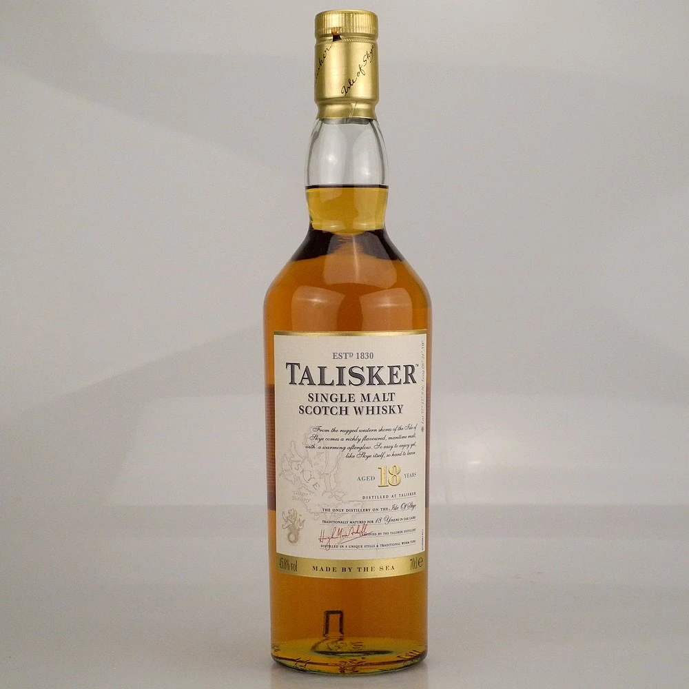 Der erstklassige Talisker 18 Jahre Island Whisky ist ein Star unter den schottischen Single Malts. Im Jahre 2007 gab es für ihn den begehrten Titel „Bester Whisky der Welt“ bei den „World Whiskies Awards“. Im Magazin „Wine Enthusiast“ landete er in der Gruppe der hohen Punktezahlen von 90 bis 95 für hervorragenden Genuss und bei der „San Francisco World Spirits Competition“ gewann er mehrmals Gold. Das hat seinen guten Grund, denn der Talisker 18 Jahre Island Whisky ist ein Meisterwerk der 1830 gegründeten Brennerei Talisker von der Insel Skye. Der maritim beeinflusste Premium-Scotch gehört zum Feinsten, was die Classic Malt Selection von Diageo zu bieten hat und ist ein Muss für Fans von Talisker Whisky sowie von Inselwhiskys im Allgemeinen.